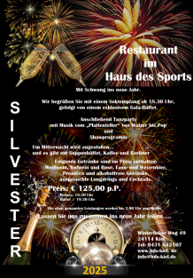 Zum mittlerweile 34.(!!) Male haben wir im "Restaurant im Haus des Sports" unser Grünkohlessen mit vorheriger Jahreshauptversammlung abgehalten und waren wiederum sehr zufrieden mit der Organisation und der Essensqualiltät. Wir kommen daher im nächsten Jahr natürlichauch gerne zum 35. Male wieder!!